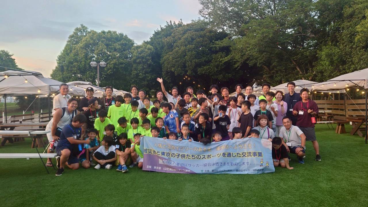 被災地交流事業のご報告 被災地交流事業 2025年7月25~27日、今回初めての取り組みで、能登半島地震の被災地支援として、 能登の小学生を墨田区に受け入れてサッカー交流試合を行いました。 これは、サッカーを通じて被災地の子供たちを元気づけ、地域間の絆を深めるための取り組みでした。 能登の子供達も、三日間と短い日程でしたが楽しく過ごしていました。 少年部